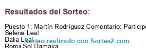 - Ganador: MartĆn RodrĆguez Comentario: Participen Selene Leal Dalia Leal Romii Sol Damaya