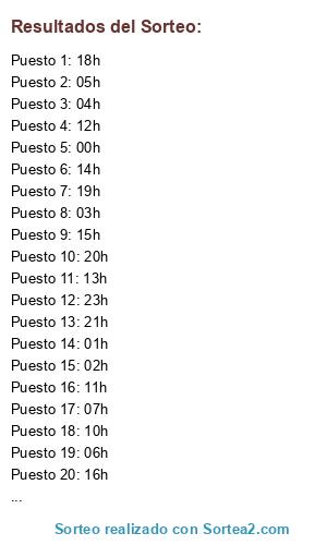 Lista de participantes: 00h, 01h, 02h, 03h, 04h, 05h, 06h, 07h, 08h, 09h, 10h, 11h, 12h, 13h, 14h, 15h, 16h, 17h, 18h, 19h, 20h, 21h, 22h, 23h.