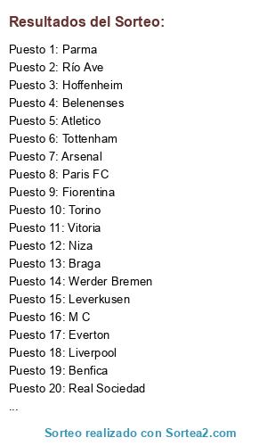 Resultados del sorteo: