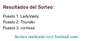 Lista de participantes: Atlas, spainpower, Emp3rad0r, Thunder, PsycoDudu, ranch, zaga, Punisherxd, ccrriisss, LadyVashj, Esderel.