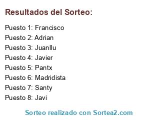 Lista de participantes: Santy, Javi, Javier, Pantx, Madridista, Francisco, Adrian, Juanllu.