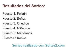 Lista de participantes: Beñat, Mandanda, Konko, Chedjou, Fellaini, N'Koulou.