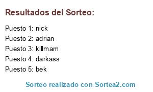 Lista de participantes: adrian, flow, darkass, nicolas, killmam, nick, bek.