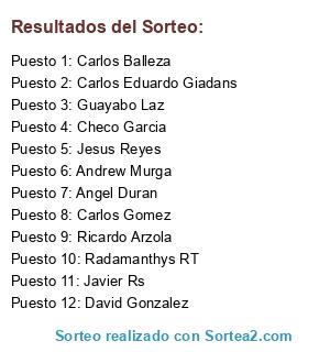 Lista de participantes: Javier Rs, Andrew Murga, David Gonzalez, Radamanthys RT, Jesus Reyes, Carlos Eduardo Giadans, Carlos Balleza, Ricardo Arzola, Angel Duran, Checo Garcia, Carlos Gomez, Guayabo Laz.