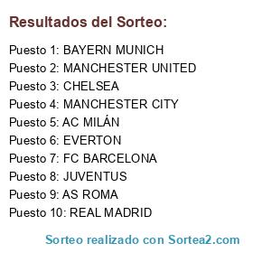 Lista de participantes: AC MILÁN, EVERTON, FC BARCELONA, REAL MADRID, CHELSEA, JUVENTUS, MANCHESTER UNITED, BAYERN MUNICH, MANCHESTER CITY, AS ROMA.