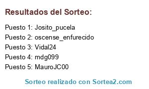 Lista de participantes: Vidal24, MauroJC00, mdg099, Josito_pucela, oscense_enfurecido.