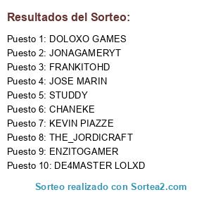 Lista de participantes: DOLOXO GAMES, ENZITOGAMER, JONAGAMERYT, CHANEKE, FRANKITOHD, JOSE MARIN, KEVIN PIAZZE, THE_JORDICRAFT, STUDDY, DE4MASTER LOLXD.