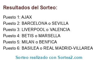 Lista de participantes: AJAX, MILAN o BENFICA, BASILEA o REAL MADRID-VILLAREAL, BARCELONA o SEVILLA, BETIS o MARSELLA, LIVERPOOL o VALENCIA.