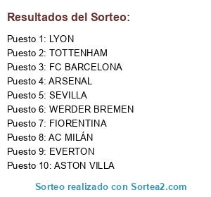 Lista de participantes: ASTON VILLA, FC BARCELONA, FIORENTINA, LYON, WERDER BREMEN, AC MILÁN, TOTTENHAM, ARSENAL, EVERTON, SEVILLA.