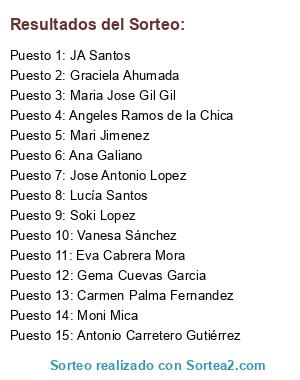 Lista de participantes: Ana Galiano , Rosa Maria Rueda Morera , Ana Santos , Ana Eva , Inmaculada Castillo Collado , Francisco Mena Ledesma , Isaac Garcia Zotano , Maria Jose Andrades Lopez , Eduardo Angel H Ifran , Ana Beli Ramos , Gema Cuevas Garcia , Soki Lopez , JA Santos , Vanesa Sánchez , Diego Navarro Contreras , Eva Martin Hidalgo , Alejandra Moreira , Mari Jimenez , Maria Angeles , Ana Maria Salas , Lucía Santos , Angeles Ramos de la Chica , Antonio Carretero Gutiérrez , Andrea Gonzalez , Moni Mica , Eva Cabrera Mora , Graciela Ahumada , María Jesús Luque Ruiz , Nancy Selvático , Juani Ortiz , Maleni Alvarez Roman , Maria Eugenia Espinosa Caravaca , Jose Antonio Lopez , Carmen Palma Fernandez , Loli Contreras Blanco , Maria Jose Gil Gil.