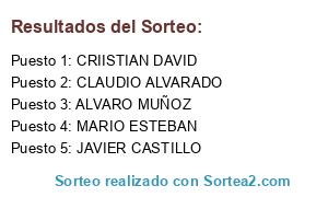 Lista de participantes: jesuma_7, Ssauron_, The_Animal__69, noir_46, CANARIOtanuki, SiLVeRNaX, reymuten, ENK__7, pocoyo_, aLvArOdOo, JYG007, guruche, rey_bobmarley, GuancheFCB, jesuke28, combo27, Guaje-RSG, pakillo_23_.