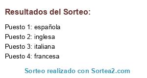Lista de participantes: española, inglesa, francesa, italiana.