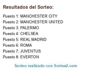Lista de participantes: PALERMO, REAL MADRID, MANCHESTER CITY, ROMA, EVERTON, JUVENTUS, MANCHESTER UNITED, CHELSEA.