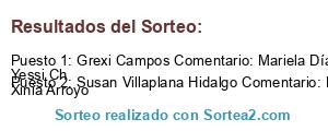 - Ganador 1: Grexi Campos Comentario: Mariela Díaz Yessi Ch Xinia Arroyo