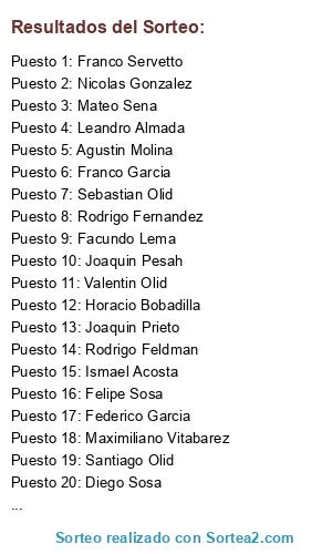 Resultados del sorteo: