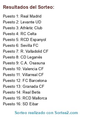Resultados del sorteo: