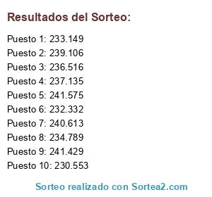 Resultados del sorteo: