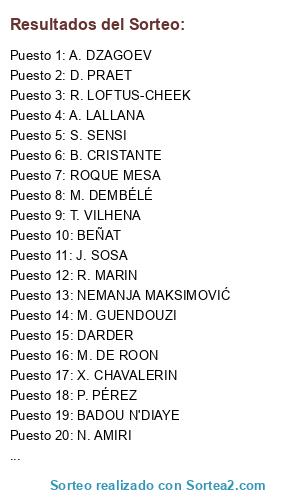 Lista de participantes: R. MARIN, N. AMIRI, D. PRAET, B. CRISTANTE, S. SENSI, ROQUE MESA, A. LALLANA, DARDER, M. GUENDOUZI, J. SOSA, M. DEMBÉLÉ, F. FAJR, M. DE ROON, T. VILHENA, R. LOFTUS-CHEEK, RENATO SANCHES, P. PÉREZ, NEMANJA MAKSIMOVIĆ, X. CHAVALERIN, GERSON, CAMPAÑA, BEÑAT, BADOU N'DIAYE, A. DZAGOEV.