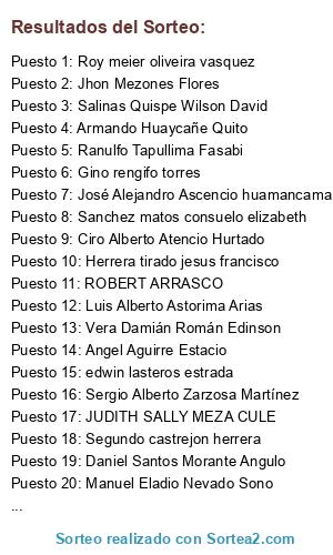 - Puesto 25: ANDY WILLIAMS RAMIREZ HUERTAS