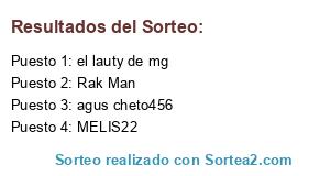 Lista de participantes: agus cheto456, MELIS22, FRANLACAVA, el lauty de mg, Rak Man.