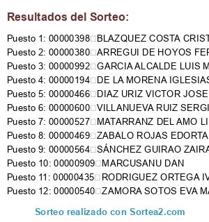 Lista de participantes: 00000932 ARAÚJO MARQUES LUIS CARLOS, 00000998 GONZALEZ RUANO DARIO, 00000949 RICO SANCHEZ DAVID, 00000954 CANO MONTOYA CESAR AUGUSTO, 00000909 MARCUSANU DAN, 00000966 GARCIA JIMENEZ PABLO, 00000912 URDANETA BONOME RAUL, 00000918 MOLDES ABILLEIRA VICENTE, 00000919 REDONDO MARTOS JAVIER, 00000982 COSTA DA SILVA PEDRO MANUEL, 00000983 FERNANDEZ MARTINEZ DANIEL, 00000986 TOROPOC IONUT AURAS, 00000924 BARREIRO MARTIN JOSE MANUEL, 00000925 BRONCHAL RUIZ FRANCISCO, 00000839 MUÑOZ COLLADO PABLO, 00000991 CASTELLANOS GOMEZ SERGIO, 00000992 GARCIA ALCALDE LUIS MANUEL, 00000996 SOTO FERNANDEZ JAVIER, 00000934 PEREIRA GARCIA DAVID, 00000935 CAMPOS GONZALEZ CELIA, 00000942 RODRIGUEZ DIAZ PABLO, 00000944 GARCIA VILLEGAS ALBERTO, 00000076 GARCIA CASTILLO JAVIER, 00000084 PANO ROMERO MARIA CRISTINA, 00000086 ALVAREZ SANTIAGO JOSE LUIS, 00000141 FUENTES SANZO ELIAS, 00000170 URUEÑA GARCIA LEANDRO GASTON, 00000175 MARCOS RODRIGUEZ FRANCISCO JAV, 00000178 CANO LLAMAS MIGUEL ANGEL, 00000194 DE LA MORENA IGLESIAS TOMAS, 00000197 MACHO GANDARA JOSE ANTONIO, 00000198 IGLESIAS ALVAREZ FRANCISCO JAV, 00000205 HUERTAS ILLESCAS FRANCISCO, 00000214 LANGA GONZALEZ ANGEL RAMON, 00000218 NIETO MARTI ANTONIO, 00000231 FERREIRO LISTE JUAN CARLOS, 00000233 PIÑA GARCIA JAVIER, 00000236 MARTIN RIVERA MARIA DEL MAR, 00000240 LOPEZ FIGUEROA PEDRO, 00000244 NAVACERRADA PIÑON BORJA, 00000250 SEXTO PONTE JESUS, 00000298 CUEZVA PERDIGUERO MARIA, 00000304 MENDES GOMES DE OLIVEIRA ANTON, 00000313 RODRIGUEZ PIANAROSA LUIS GONZA, 00000314 POSADO CARRO JAVIER, 00000326 NOVES VICENTE MARIA CARMEN, 00000380 ARREGUI DE HOYOS FERNANDO, 00000398 BLAZQUEZ COSTA CRISTOBAL, 00000428 DE AYALA PARETS JOSE ANGEL, 00000435 RODRIGUEZ ORTEGA IVAN, 00000436 TAMARIT RODRIGO JOSE FRANCISCO, 00000442 PAZ FRAILE MIGUEL ANGEL, 00000465 FERNANDEZ PALMAS CARLOS, 00000466 DIAZ URIZ VICTOR JOSE, 00000469 ZABALO ROJAS EDORTA, 00000500 IANCU MIHAITA, 00000506 SÁNCHEZ RODADO CONCEPCIÓN, 00000513 MANZANO MAJADO LUISA, 00000527 MATARRANZ DEL AMO LIDIA, 00000538 SALGADO GARCÍA DAVID, 00000540 ZAMORA SOTOS EVA MARÍA, 00000558 POZOS SIERRA LAURA, 00000562 GIL MOÑUX GERMAN, 00000563 MORENO ROMERO SAMUEL, 00000564 SÁNCHEZ GUIRAO ZAIRA, 00000577 HEREDIA SEGUNDO FRANCISCO, 00000595 LLORENS SIMO FRANCISCO JAVIER, 00000600 VILLANUEVA RUIZ SERGIO, 00000603 DAFONTE GARCIA ALBERTO, 00000606 SEVILLANO RODRIGUEZ RAQUEL, 00000616 HERAS ARRIBAS DANIEL, 00000664 PRIETO PASCUAL JONATHAN, 00000674 ZARRAGA PEÑALOZA ANTONIO JOSE, 00000679 RODRIGO DE DIEGO ANA MARIA, 00000683 CARRIÓN PÉREZ SUSANA, 00000710 PASTOR FERRANDO ESAÚ, 00000736 GONZALEZ RUANO RAÚL, 00000775 GARCIA TAPIA ANTONIO, 00000787 GARCÍA FERNÁNDEZ ABEL, 00000795 DAS DORES FRANCISCO JOSE ARMAN, 00000797 MUÑOZ IZQUIERDO JOSE, 00000807 LAZARO SALMERON RUBEN, 00000809 ACEVEDO NOGUEIRA JULIÁN, 00000841 BASCONES LEGARDA GORKA, 00000847 SANCHEZ RODRIGUEZ DAVID, 00000849 MANGAS HERNÁNDEZ ROCIO, 00000862 PEÑALVER SÁNCHEZ JOAQUIN, 00000866 VIEIRA DA SILVA LUIS CARLOS, 00000868 GONCALVES MENDES JORGE LUIS, 00000874 MONEA DUMITRU RADU, 00000882 SANCHEZ DOMINGUEZ EUTILIO, 00000907 GONZALEZ BERNARDEZ CRISTINA.