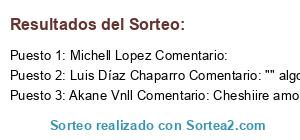 - Ganador 3: Akane Vnll Comentario: Cheshiire amo como dibujas uwu <3 ~