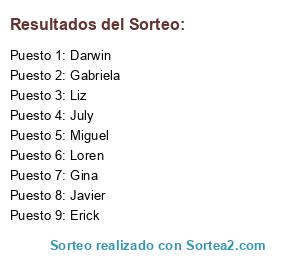 Resultados del sorteo: