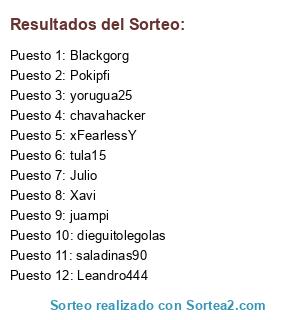 Lista de participantes: Xavi, Blackgorg, saladinas90, Julio, Pokipfi, juampi, xFearlessY, Leandro444, tula15, dieguitolegolas, yorugua25, chavahacker.