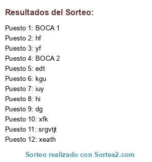 Lista de participantes: dg, BOCA 1, hf, xfk, hi, srgvtjt, xeath, yf, BOCA 2, kgu, edt, iuy.