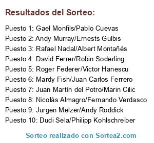 Lista de participantes: Gael Monfils/Pablo Cuevas, Roger Federer/Victor Hanescu, David Ferrer/Robin Soderling, Nicolás Almagro/Fernando Verdasco, Jurgen Melzer/Andy Roddick, Andy Murray/Ernests Gulbis, Juan Martín del Potro/Marin Cilic, Mardy Fish/Juan Carlos Ferrero, Rafael Nadal/Albert Montañés, Dudi Sela/Philipp Kohlschreiber.