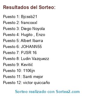 Lista de participantes: Joseph. Guardiola., el mono0212, Choca123, Carlosca15, delriocesar9, FC Angel Duran, Colocho034, leoperezuy10, Nacho Lopez A, deybisarayar, Sergio Kantuta, PatoCARP.
