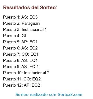 Lista de participantes: GI, Institucional 1, Institucional 2, AS: EQ 1, AS: EQ2, AS: EQ3, AS: EQ4, Paraguarí, CO: EQ1, CO: EQ2, AP: EQ1, AP: EQ2.