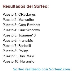 Lista de participantes: Poliny, Coro Brothers, Dani Melo, Baricelli, Cracnkndown, FranciMc, Naranjito, Manuelho, CRackeres, Juaneee10.