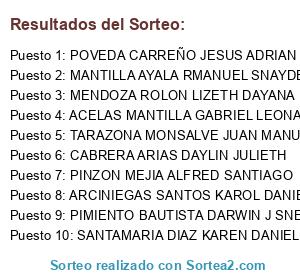 Resultados del sorteo: