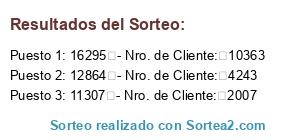 - 1er. premio por $2.000 : 16295 - Nro. de Cliente: 10363