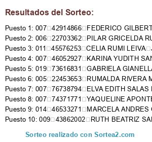 Resultados del sorteo: