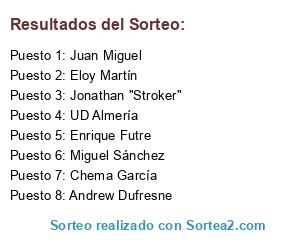 Lista de participantes: Andrew Dufresne, UD Almería, Enrique Futre, Jonathan "Stroker", Miguel Sánchez, Eloy Martín, Juan Miguel, Chema García.