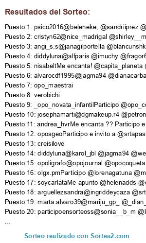 - Puesto 20: participoensorteoss@sonia__b_m @laurasshit_ @opoteleco