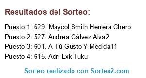 Lista de participantes: 1. Patricia Peña, 2. Keiko Tamashiro Akamine2, 3. Erika Mapelli, 4. Lydia Vega, 5. Mayra Romaní1, 6. Karla Torres Taquía, 7. Giuliana Ruiz2, 8. Mel Castillo, 9. Celia Medina, 10. Princesa Hiroko Nakamura, 11. Jacky Ponce Bravo2, 12. Claudia Obregon Durand 1, 13. Marcia Selene Gonzales Neyra, 14. Alondra Villavicencio, 15. Ana Cecilia Colina Brush11, 16. Ingrid Puelles Nuñez, 17. Ana Cecilia Colina Brush4, 18. Natalie Chauvel 1, 19. Ana Cecilia Colina Brush10, 20. Nicol Campos Deudor, 21. Lily Tito1, 22. Cynthia Rey Sánchez5, 23. María Guadalupe Avalos Robles, 24. Illary Vendramini, 25. Leslie Peñaloza, 26. Grupo Boceto, 27. Bussines Perú, 28. Alvaro Fontana Aguero, 29. Candy Souvenir, 30. Barbara Ortiz L, 31. Miguel Angel Sandoval Gibaja, 32. Jhipsson Vargas, 33. Jose Fernando Flores Cunza, 34. Yessenia Ticse2, 35. Rut Fiorella Delgado5, 36. Jhoanna Lisseth León Vílchez, 37. A-Tú Gusto Y-Medida5, 38. Gladys Ayala Rivera, 39. Mapy Merino, 40. Andrea Gálvez Alva5, 41. Paola Relayze Porras1, 42. Gianina F Morales, 43. Dianita Pizarro, 44. Victor Ismael Galiano Carquin, 45. Giuliana Ruiz5, 46. Cesar Vallejo, 47. Sergio Carrion, 48. Kevin Meoño Gamarra, 49. Luz Giuliana Luna Campos, 50. Jorge Luis Sanchez Aburto, 51. Gigi La Unikita, 52. Boris Castillo, 53. Natalie Chauvel 8, 54. Myriam Ximena Salcedo Landeo9, 55. Alexandra Miranda Beltrán 1, 56. Norka Castilla1, 57. Darlyn Neyra Salazar, 58. Luis Escarza8, 59. NikholsiiTaa Winii Gamboa Sanches, 60. Toty Montoya, 61. Cynthia Rey Sánchez, 62. Keiko Tamashiro Akamine4, 63. Johselyn Arbieto, 64. Luis Escarza9, 65. R Dionicio Nestares, 66. Cindy Maldonado1, 67. Frida Castañeda Castillo6, 68. Ruth Marlene Enciso Marcelo, 69. Myriam Ximena Salcedo Landeo1, 70. Mayra Puma Huarancca, 71. Gloria Landeo Sovero, 72. Karlita Portal, 73. Natalie Chauvel, 74. Giuliana Laura Lopez Loja, 75. Lupe Sauñe Hurtado, 76. Ximena Venero2, 77. Alexandra Miranda Beltrán 3, 78. Teff Css, 79. Rolando Tapia Torres, 80. Julio Santillana, 81. Elisabeth Alvarez Gonzalez, 82. El Conejito, 83. Raul Fernando Santillan Tuesta2, 84. Mariel Roma, 85. Fiore Quijandria Leon2, 86. Linda Africa Gutierrez Agramonte, 87. A-Tú Gusto Y-Medida4, 88. Jacqui Arutaipe, 89. David Luna Reyes, 90. Rosario Bustamante Guzman 2, 91. William Lopez Perez, 92. Keit Lazarte Ortega, 93. Piero Pedreschi Gámez, 94. Josselin Casarrubias, 95. Davis Alexander Duran Caldas, 96. Jorge Tirado Atalaya, 97. Gabymortem Rivera Loyola, 98. Basemen Cusco, 99. Nancy Rosas, 100. Luigui Michilot Cipriani, 101. Ariana Herrera7, 102. Ana Benites del Aguila, 103. Zoila Tarazona Malache, 104. Ximena Venero12, 105. A-Tú Gusto Y-Medida1, 106. Hugo Valcarcel Ramos, 107. Frida Castañeda Castillo9, 108. Hernan Flores Amaya, 109. Nancy Rosas1, 110. Rosario Bustamante Guzman 3, 111. Natalie Chauvel 6, 112. Angela Paredes Huanca, 113. Cynthia Rey Sánchez3, 114. Rodrigo David Angeles Aquilino, 115. Luis Escarza1, 116. Dherek Alexis, 117. Rubén Sánchez, 118. Gyssela Rojas Avila, 119. Ana Paula', 120. Katty Huaman, 121. Natalie Chauvel 10, 122. Encanto De Cereza, 123. Jorge Fulca, 124. Gabriela Emperatriz Delgado Rios, 125. Victor Sanchez Retes, 126. Cynthia Rey Sánchez8, 127. KaRlita Zavaleta Zavala, 128. Jacky Ponce Bravo4, 129. Luz Aurora, 130. Ximena Venero14, 131. Jeiner Torres Siesquen, 132. Milagros Pianto Robles, 133. Harold Arturo Castañeda Ramos, 134. Victorhugo Barral4, 135. Rosario Carrasco Ferreyra, 136. Myriam Ximena Salcedo Landeo2, 137. KaRlita Zavaleta Zavala5, 138. Ximena Venero16, 139. Ana Cecilia Colina Brush7, 140. Ely Catis, 141. Monica Valenzuela, 142. ToTe Rojas Malca, 143. Luis Escarza2, 144. Giancarlo Castro Ley, 145. Raul Fernando Santillan Tuesta3, 146. Ariana Herrera9, 147. Nicol Rojas Ochoa, 148. Mily Garcia Godos Goicochea, 149. Eveliny Almonacid, 150. Luis Escarza, 151. Adri Lxk Tuku, 152. Charito Valverde, 153. Jeiber Ibanz, 154. Janis Córdova2, 155. Kevin Alvaro Hilares Llamosas, 156. Micaela Roman, 157. Víctor MAnuel Rey Sánchez, 158. Karla Katherine Aguirre Gonzales2, 159. Sofia Cortez, 160. Emilý Manco, 161. Dianisse Lucia, 162. Christian Salazar Araujo, 163. Carlos Omar Traverso, 164. Ingrid Quesada Castro, 165. Mel Castillo12, 166. Iraida Milla, 167. Karla Katherine Aguirre Gonzales, 168. Jimena Quispe, 169. KaRlita Zavaleta Zavala3, 170. Frida Ibáñez Ayerve, 171. Jesus Martinez Lazaro, 172. Claudia Purizaca, 173. Giovana Casafranca Sosa, 174. Fernando Danjoy Yanes, 175. Jean Carlos Manrique Zapata, 176. Sussy Revilla Galvez, 177. LuiziTo Avila, 178. Jvanca Guzman Negrini, 179. A-Tú Gusto Y-Medida, 180. Josécarlos Menocal, 181. Catts Soon, 182. Fiore Quijandria Leon7, 183. Frida Castañeda Castillo4, 184. Milaa Castro Zevallos, 185. Onna Perú, 186. Breitling Replicas Peru, 187. Danitza Trullen Bellina, 188. Liliana Gutierrez, 189. Silvana Mariela Huambo Lopez, 190. Mel Castillo10, 191. David Acuña, 192. KaRlita Zavaleta Zavala4, 193. Jorge Luis Urday Geldres, 194. Liliana High, 195. Jose Antonio Cespedes, 196. FullTravel Tours, 197. Jeanina Brc, 198. Kiara Carrera, 199. Geslin José Brunno Chávez, 200. Myriam Ximena Salcedo Landeo5, 201. Luis Escarza13, 202. Cynthia Rey Sánchez9, 203. A-Tú Gusto Y-Medida13, 204. Mel Castillo1, 205. Alexandra Miranda Beltrán 5, 206. Mayra Romaní3, 207. Cindy Maldonado2, 208. Lola Wong Meono, 209. Keylla Garate Aranda, 210. Alexandra Miranda Beltrán 6, 211. Diselo Con Cariño, 212. Luisa Jesus3, 213. Patrick Cosme, 214. Fiore Arizaga Aguado, 215. Myriam Ximena Salcedo Landeo6, 216. Mary Barrantes4, 217. Geraldine Ferro Monteagudo, 218. Claudia Olivares, 219. Cindy Maldonado, 220. Fernanda Rivera Reyes, 221. Ximena Venero8, 222. Dado Alfredo Barría, 223. Karla Katherine Aguirre Gonzales4, 224. Jhon Llimpe Romero, 225. Romulo Marino Beltran Saldaña, 226. Sergio Acevedo Medina, 227. Ana Cecilia Colina Brush2, 228. Carolina Arellano, 229. Natalie Chauvel 3, 230. GusChavo Gutierrez, 231. CeshiTar CaLe