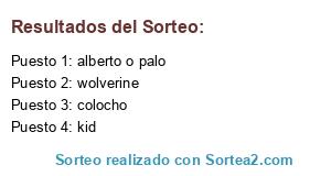 Lista de participantes: wolverine, colocho, kid, alberto o palo.