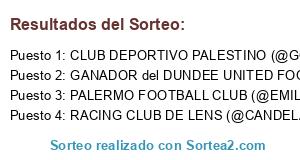 Lista de participantes: CLUB DEPORTIVO PALESTINO (@GONHIX), PALERMO FOOTBALL CLUB (@EMILICHLOL), RACING CLUB DE LENS (@CANDELALUISA), GANADOR del DUNDEE UNITED FOOTBALL CLUB (@BETIS_87) VS S.S.C. NAPOLI (@NORMAN000).