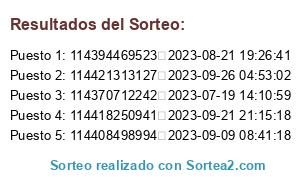 - 2023-09-26 09:46:34 (GMT): Se ejecuta el sorteo