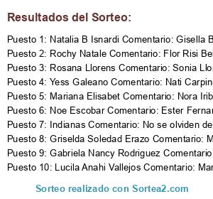 - Ganador 3: Rosana Llorens Comentario: Sonia Llorens Celeste Nuñez Yamila Debenest