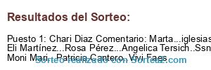 - Ganador: Chari Diaz Comentario: Marta...iglesias.. Eli Martínez...Rosa Pérez...Angelica Tersich..Ssndra Cejas.. Moni Mari...Patricia Cantero..Vivi Faes