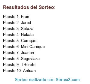 Lista de participantes: Nakta, Thorete, Carrique, Aitor, David, Jared, Antuan, Mini, Segovia, Fran, Juanan.