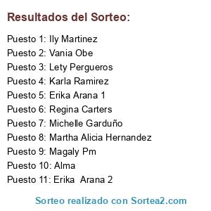 Lista de participantes: Magaly Pm, Regina Carters, Michelle Garduño, Ily Martinez, Erika Arana 1, Erika Arana 2, Vania Obe, Karla Ramirez, Lety Pergueros, Martha Alicia Hernandez , Alma, .