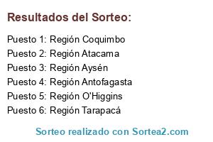Lista de participantes: Región Coquimbo, Región Tarapacá, Región Antofagasta, Región Atacama, Región O'Higgins, Región Aysén.