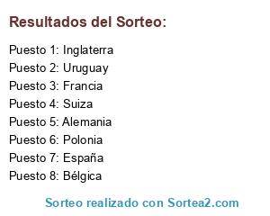 Lista de participantes: España, Inglaterra, Bélgica, Francia, Alemania, Polonia, Uruguay, Suiza.