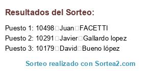 Este sorteo ha sido certificado por Sortea2. Sortea2 garantiza que: