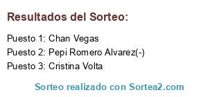 Lista de participantes: Alda Peixoto(2 participaciones), Alicia Carrero Marcos(-), Amalia Garcia Lopez(-), Amparo Garcia(-), Ana Balsa Cajaraville(-), Ana Belen Calvo Garcia(-), Ana Maria Cruz Perez(-), Andrea Haro(-), Angela Carpente Garcia(0), Angela Lepique(-), Angelines Fernandez(6 participaciones), Angiiee Saanchez(-), Antonio GN(8 participaciones), Arantxa Sanchez(6 participaciones), Bego Alvarez(-), Bienve de la Rosa(8 participaciones), Car Sa Bla(-), Carmen Garcia Magadan(6 participaciones), Carmen Gelabert Perelló(-), Carmen Vegas(2 participaciones), Carolina Mami Duna(5 participaciones), Chan Vegas(9 participaciones), Charo Romero Álvarez(3 participaciones), Chris Hana(5 participaciones), Concepcion Matias Simarro(-), Cristina Fernández(7 participaciones), Cristina Rosa(-), Cristina Soria Vilella(4 participaciones), Cristina Volta(2 participaciones), Daniel Galvez Polo(3 participaciones), Dominga Romero(5 participaciones), Elena Knyazhechenko(11 participaciones), Eltocinos .., Emilia Fraga(-), Encarni Estévez(-), Encarni Sanchez Alanis(-), Esther Romero Martinez(2 participaciones), Eva Mari?o Sánchez(-), Felicidad López Selas(3 participaciones), Francisco José Carrasco Torres(-), Gian Carlo Murguia, Ikram Kaouakibi(-), Irene Masip Morte(-), Irmo Higinio Ruiz Diaz(-), Isabel Teis Tarinas(5 participaciones), Isadora Mayandia(2 participaciones), J Maria Rico Gardu?o(7 participaciones), Javi Salinas(6 participaciones), Javi Salinasa(4 participaciones), Jennifer Bonilla Pizarro(-), Jennifer Bonilla, Jennifer Romero(-), Jesus Fernandez Romero(11 participaciones), José Alberto Pérez(-), Josy Sola Olivencia(5 participaciones), Juan Cadenas(6 participaciones), Kapitana Corsaria Pirates(10 participaciones), Katerina Knyazhechenko(10 participaciones), Katy Pastran(-), Kela De Estrada(2 participaciones), Lali Pujala(4 participaciones), Laura Romero, Lola Armero Cruz(-), Lorena Gallardo Martinez(-), Lucia Sanchez Mouriz(4 participaciones), Luis Manuel Rubio Alvarez(9 participaciones), Luisa Maria Garcia Repiso(-), Luisa Menargues(6 participaciones), M Antonia Calvo del Castillo(-), Mano Alvarez(6 participaciones), Manoli Valdes(0), Manuel Torres(7 participaciones), Mari Aguilar Cortes(-), Maria Colomo Diaz(16 participaciones), Maria Eugenia Arias Lozano(2 participaciones), María Freire(4 participaciones), Maria Jesus Maza Romero(-), Maria Jose Armand, Maria Jose Martinez Gonzalez(18 participaciones), Marial Cristobal, Marina Martín García(5 participaciones), Marta Cernuda(2 participaciones), Marta Morales López(-), Martha Volta, Mary Conde Neira(-), Mercedes Soler(7 participaciones), Michaela Weissova(10 participaciones), Michi Salas(-), Mónica Prieto García(5 participaciones), Montse Sampedro Martinez(-), Nagore Arostegui Rojo(6 participaciones), Natalia Prieto Garcia(2 participaciones), Noelia Navarro Torrejon(-), Núria Garcia(6 participaciones), Nuria Perez Ortega(2 participaciones), Olivia Gonzalez Jimenez(-), Pablo Rubio Prestel(6 participaciones), Patricia Beneite(2 participaciones), Patricia Garcia(3 participaciones), Patricia Villaca?as(-), Pepi de la Rosa(5 participaciones), Pepi Romero Alvarez(-), Pilari Pilar Lo(-), Raquel Roig Castillo(-), Rosa Rodriguez Ortiz(6 participaciones), Rosi Jabalera(12 participaciones), Sandra Gallego Lopez(-), Santos Lopez De La Vieja Sanchez(6 participaciones), Sarina Alvarez(3 participaciones), Sergio Arnaiz Delgado(-), Sergio Navarro Torrejón(2 participaciones), Sofia Esther Ruiz Garcia(10 participaciones), Sonia Martin Gonzalez(6 participaciones), Sortreator Sorteos Concursos, Tere Vegas(0), Thalia Velasquez(-), Trini Fernandez(2 participaciones), Vanesa Garcia Valera(2 participaciones), Vanesa Molina Palao(5 participaciones), Vanessa Cuadrado Palomo(4 participaciones), Vanessa Fernandez(5 participaciones), Vanessa Maria(3 participaciones), Veronica Gomez(5 participaciones), Veronica Vivas Rentero(-), Vicky Perez(-), Yaiza Vegas(10 participaciones), Yliana Gomez Diaz(-).